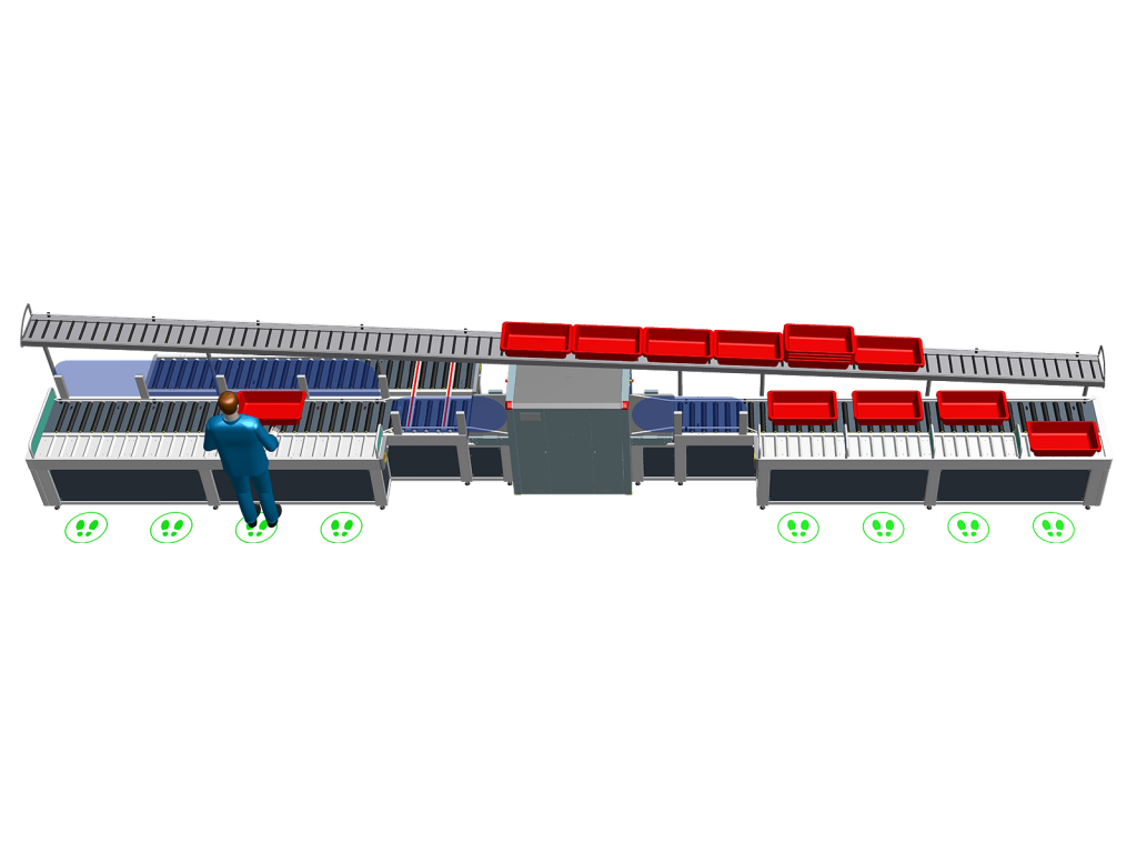 Automatic Tray Return Systems for hand luggage checking with special line for suspicious baggage handling