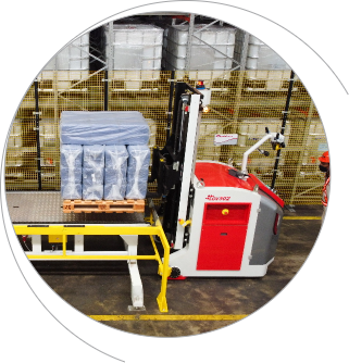 The two Cassioli LGVs help to move pallets in and out of the automated warehouse.