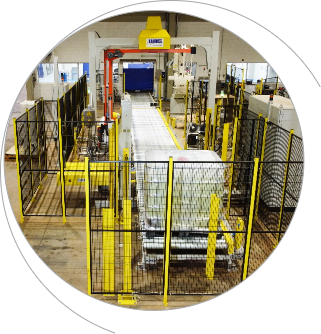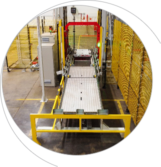 The different types of pallets arrive at the warehouse via a system of roller and chain conveyors. They then pass through quality and shape control and enter the automated warehouse. Here, they are picked by the ISAT pallet shuttle, which, through the ILIFT, provides multi-depth storage in the 7 depth levels of the warehouse, for each side.