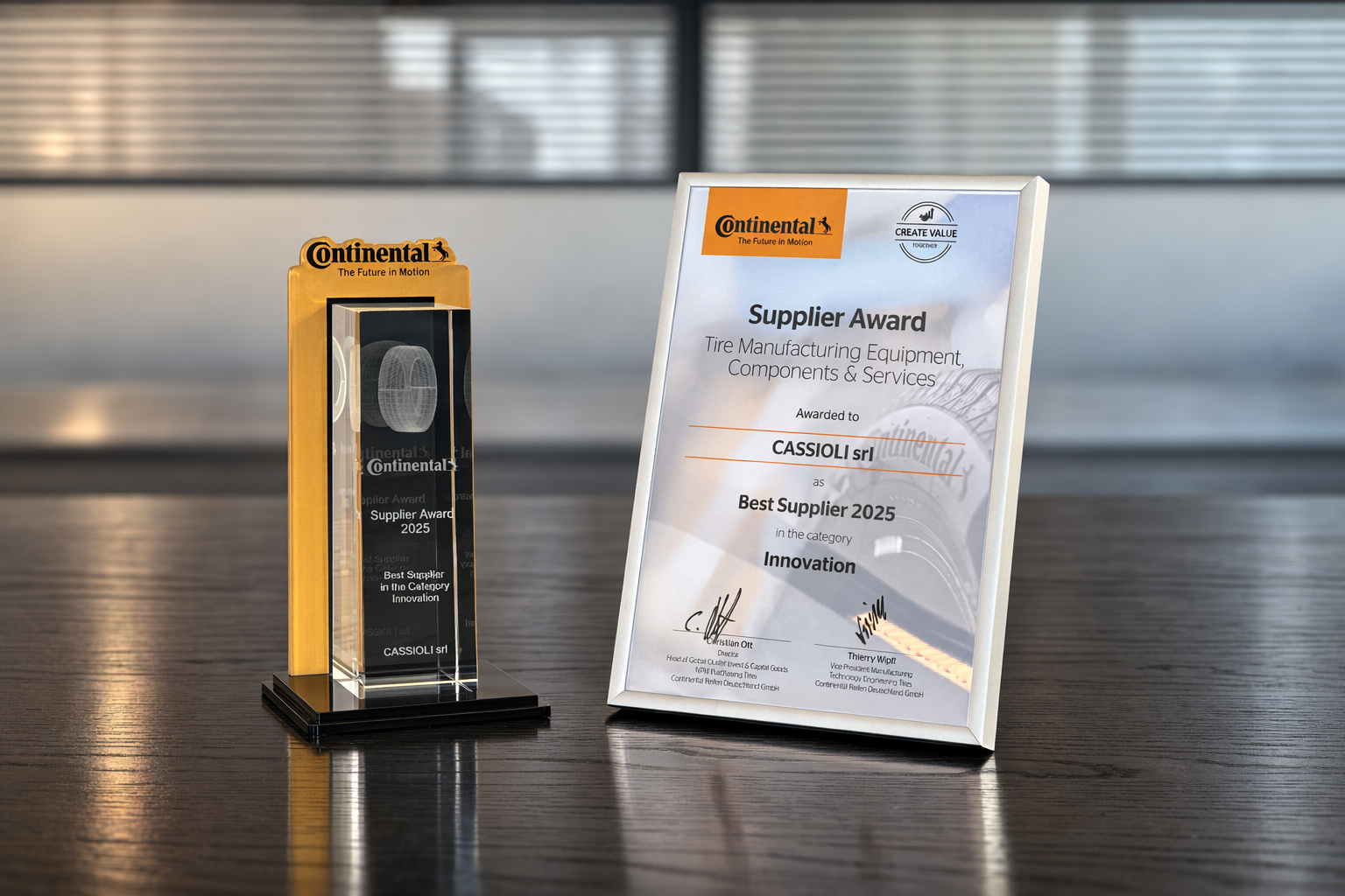 In conferring this award, Continental highlighted the value of the strategic partnership with Cassioli and its key role in developing innovative solutions for tire factory automation. In particular, it emphasized Cassioli’s ability to work in close synergy with Continental plants, promoting constant dialogue on new ideas, developing and testing advanced solutions, and rapidly bringing them from innovation to full industrial application.