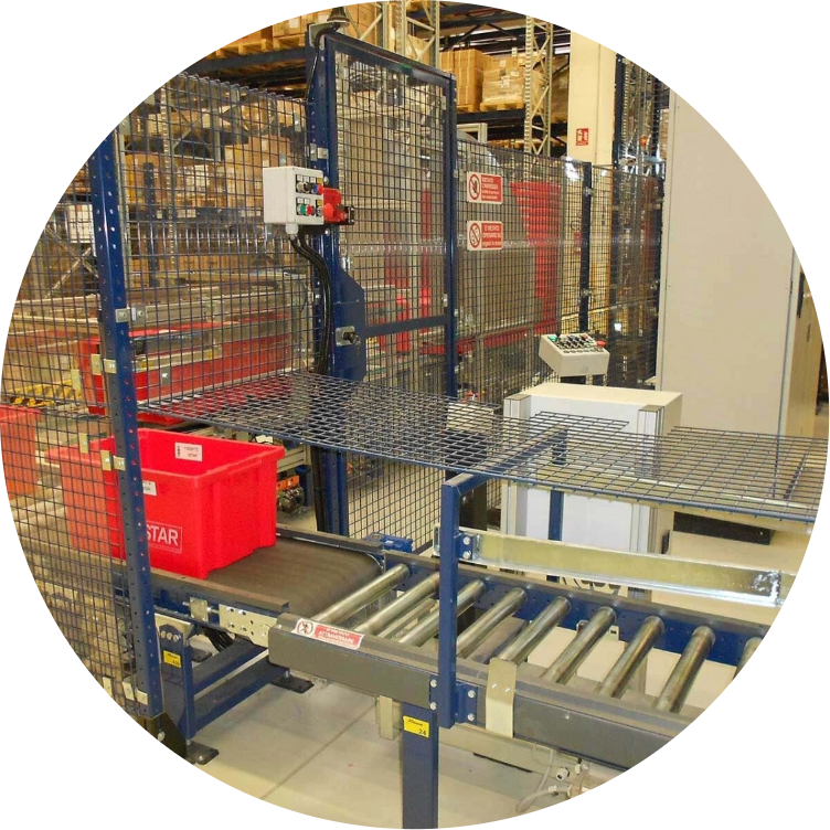 The Cassioli Pick to Belt solution is usually adopted to pick large articles or entire cartons or merchandise (sets of products in secondary packaging). The system comprises a main conveyor on which the picker positions the cartons picked from a set of pallets. The operator is equipped with an RF terminal and a printer to apply a serial number or shipping label. The handling line conveys the cartons to the vehicle-loading area.