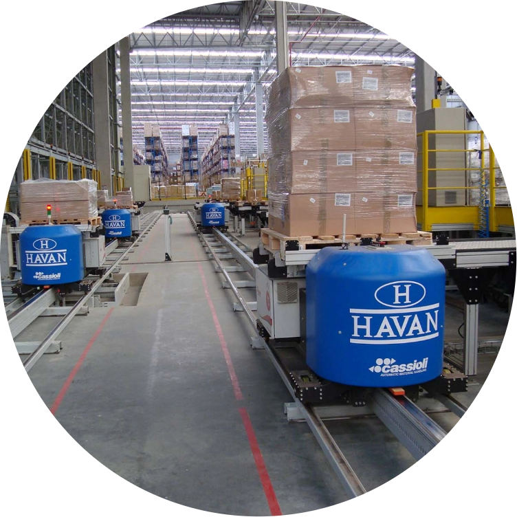 Cassioli’s picking bays served by RGV (Rail Guided Vehicle) automatic shuttles represent the ideal picking solution for the “goods-to-man” approach. Sorting precedes the actual picking stage: the load units from which pick up is made are automatically sorted at fixed picking stations by a system of SLS shuttles moving around a closed loop. Each picking island can be associated with one or more orders being filled. The RGV system can also manage recovery of the shipping unit and subsequent transfer to the loading area.